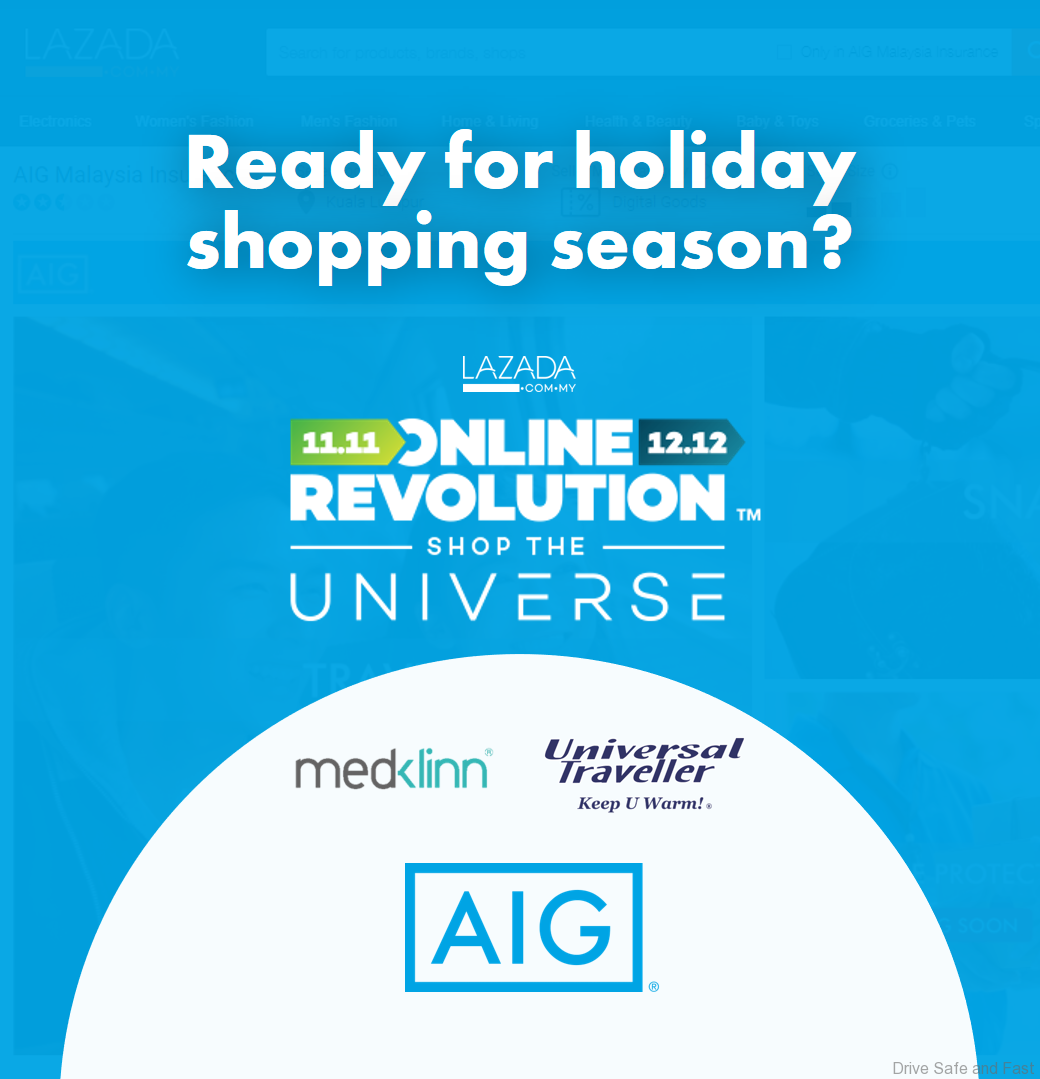 The Lazada Online Revolution begins on Saturday and runs through to 12 December 2017. This is the first time AIG Malaysia is participating in such an online sale.
