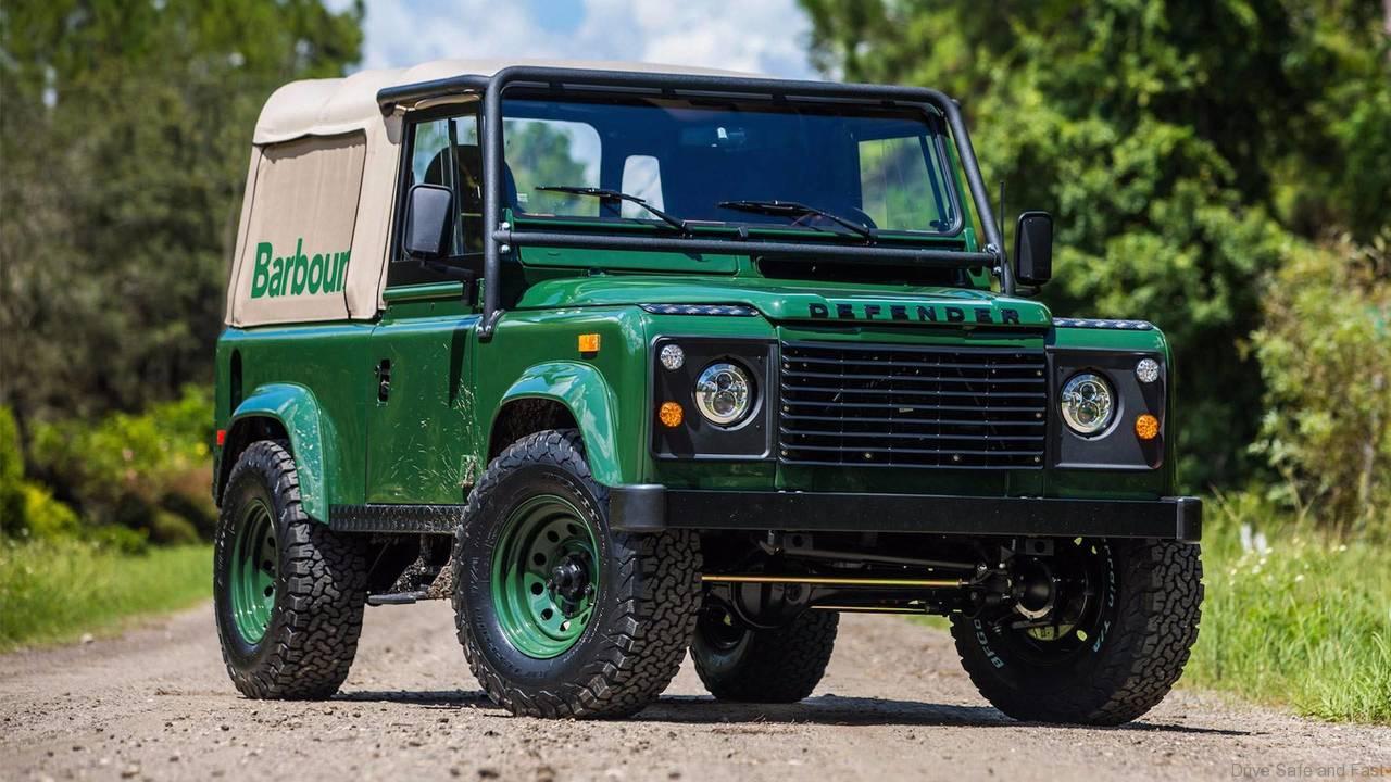 Codenamed Project Barbour, this one-off Defender is finished in a lovely Coniston Green paint job with color-matching wheels, a Rovers North beige soft top with the Barbour logo affixed, and added detailing to the grille and headlights.