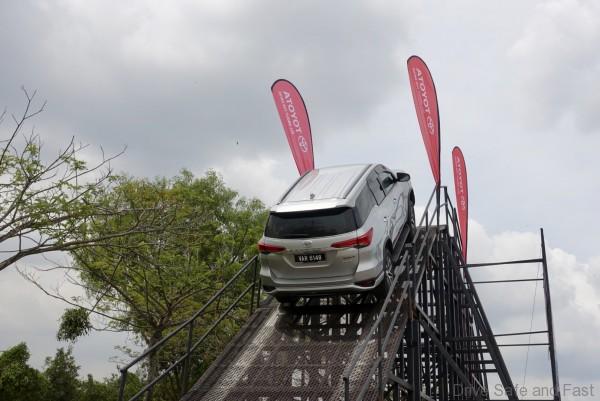 They then sent the Fortuner up an extremely steep climb. Without much of a push, it made it to the top. Following that, Downhill Assist Control was used to bring the vehicle down an equally steep descent at a controlled speed.