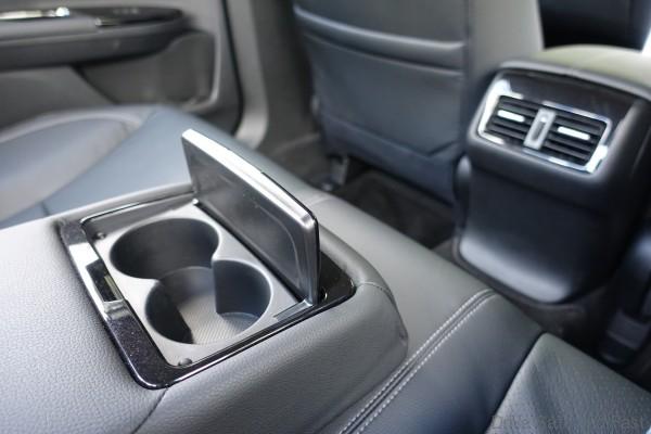3) Leather seats, air cond blowers and a thick armrest are all present for passengers in the rear