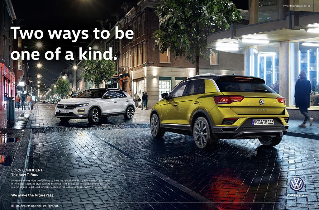 Volkswagen launches 360° campaign for the new T-Roc under the slogan of “Born confident.”, the campaign shows that the T-Roc is just as confident in an urban environment as in rugged terrain.