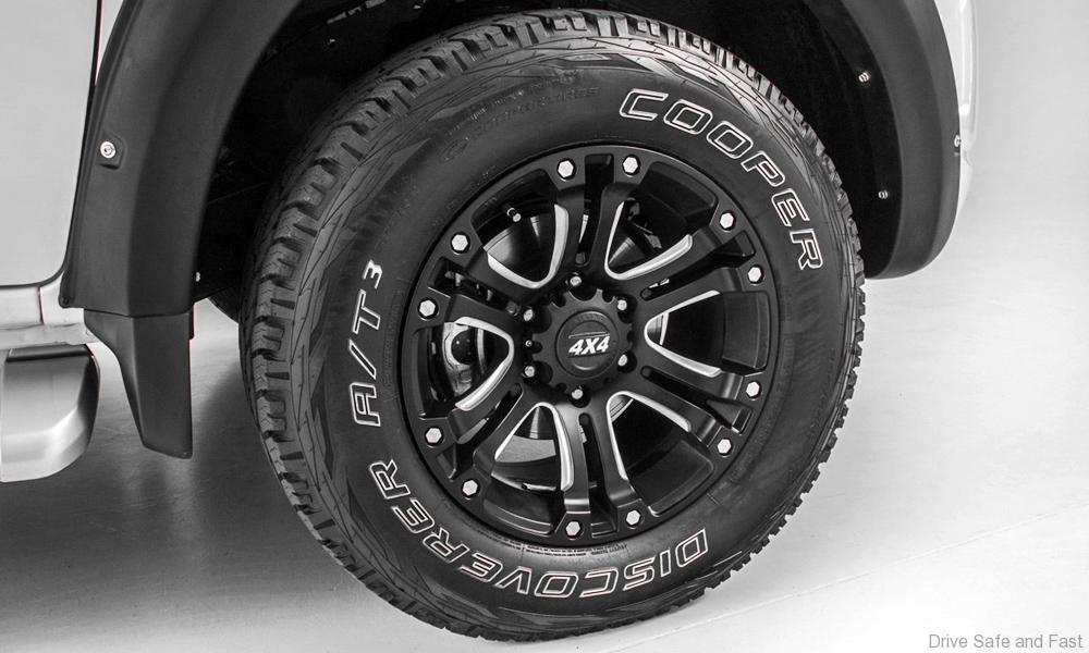 Mitsubishi says the new Triton Xtreme is fitted with accessories that include black and chrome alloy wheels (wrapped in Cooper Adventurer all-terrain rubber), bonnet guards, grille and foglamp covers, front and rear light guards, wheelarch extensions, front and rear door handle covers, Triton-branded scuffplates, heavy-duty rubber mats, a tonneau cover, a styling bar, a tailgate cover and a fuel-flap cover.