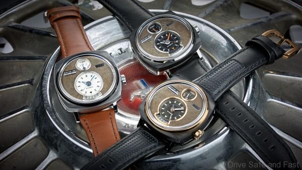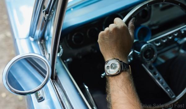 Each finished design incorporates the vehicle identification number, year of production and classic Mustang design cues. A power dial designed to look like a fuel gauge shows remaining battery life, and the hands, date, and dial numbers are all influenced by the iconic car’s dashboard. On one trip to Sweden, the team struck gold with a rare 1966 Raven Black model that has become the basis for their limited edition P51-04 collection of 250 watches.