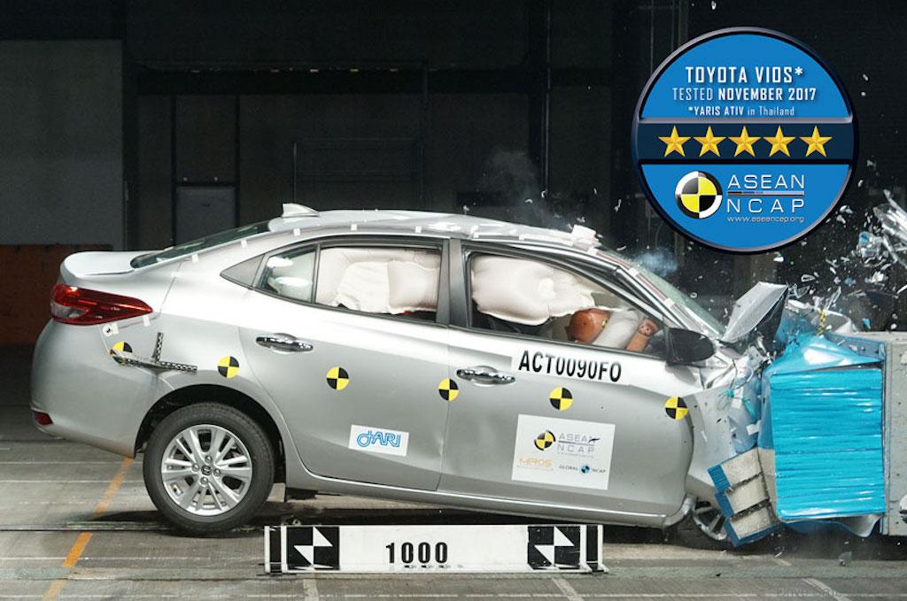 The ASEAN NCAP has awarded the new Toyota Vios a 5-Star rating in its crash tests. The Thai-made Vios, also sold as the Yaris Ativ (with a smaller 1.2-litre engine), had scored four stars adult occupant protection and two in child occupant protection back in 2012, showing improvement.