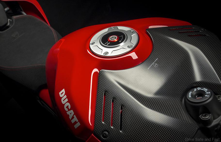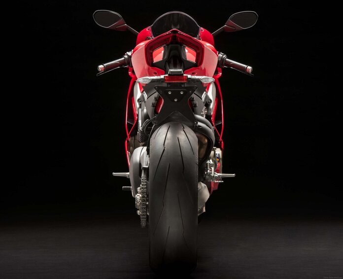This is the first time that a series production Ducati will feature a V4 engine, after decades of specialising in high-performance V-twins.  Ducati says with the 90-degree V-angle, the engine is inherently well-balanced and there was no need for a balancer shaft.