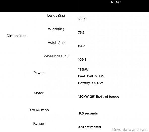 Improvements in the air supply system, performance at high altitudes and refueling times, along with overall efficiency and fuel economy put the NEXO in a class all its own. In addition the NEXO has improved power density and durability comparable with a gasoline-powered vehicles.