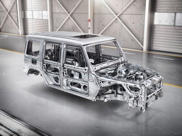 Using a digital prototype, the developers simulated the service life of individual components and closed systems to find out in which places it would be possible to make use of lighter raw materials. The diet worked, as the G-Class has shed around 170 kg. The recipe for success: a new mix of materials comprising strong, high-strength, ultra-high-strength steels and aluminium, as well as improved production processes at the Magna Steyr plant in Austria. The rigid body shell is now made of a variety of steel grades, while the wings, bonnet and doors are made of aluminium.
