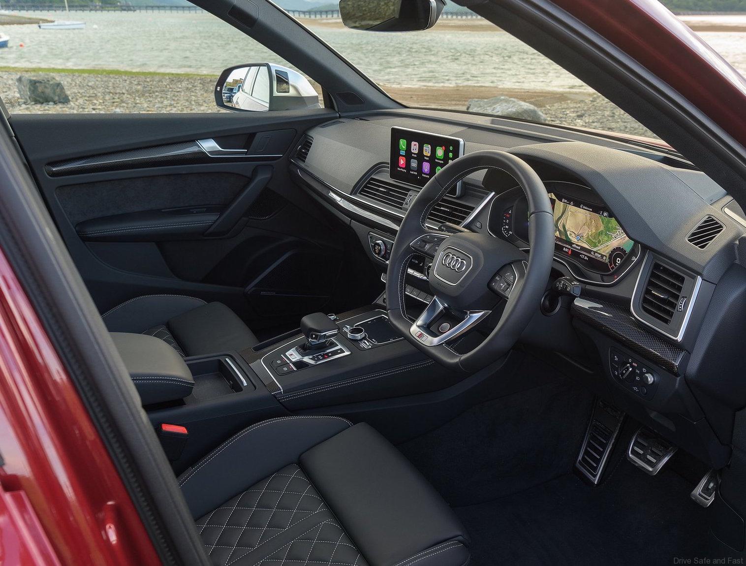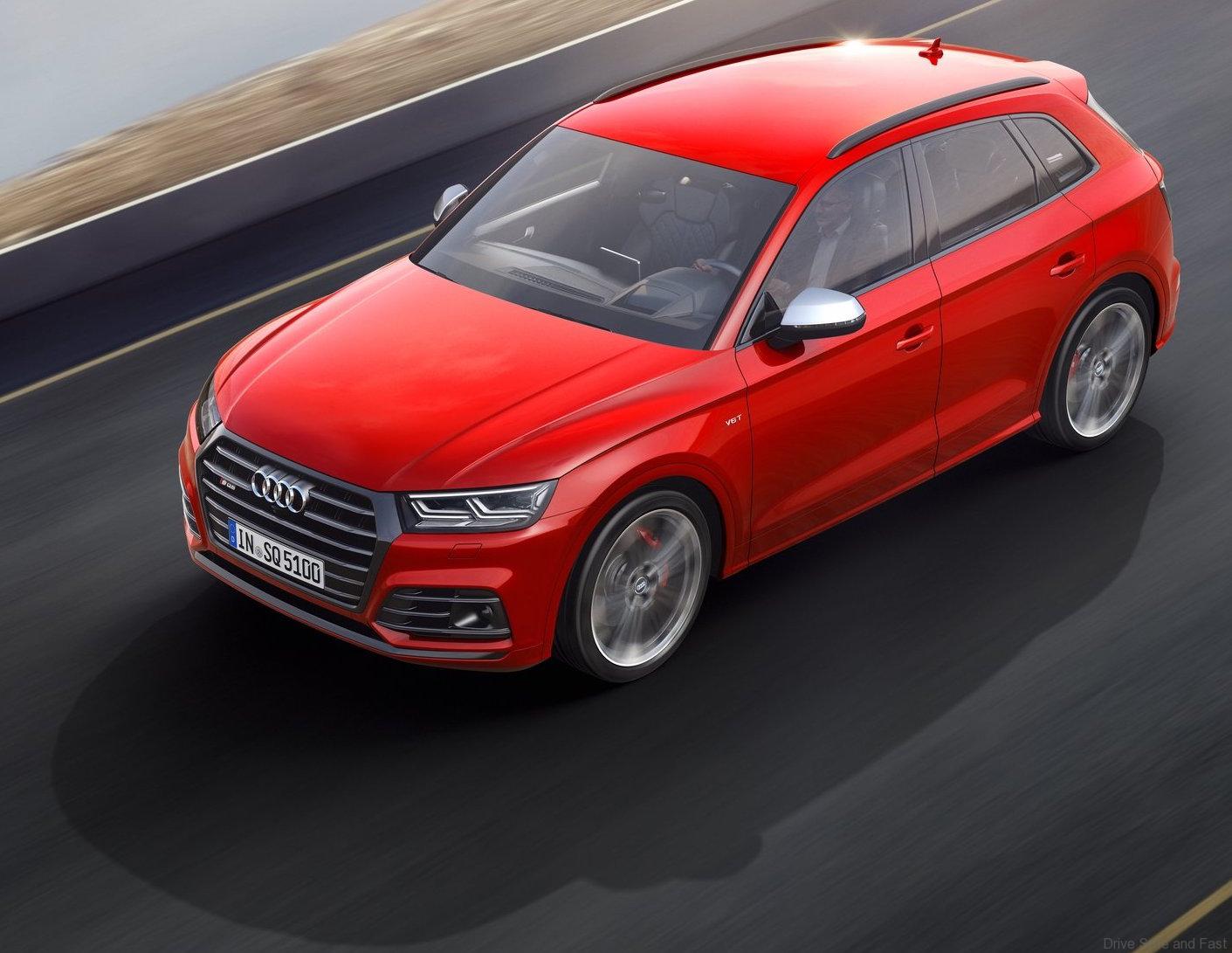 A five-link suspension front and rear lays the foundation for the sporty driving characteristics of the new Audi SQ5. The complex design provides for greater stability at the limit and combines increased agility with significantly improved comfort. The standard damper control features a particularly wide spread between comfort and dynamic. The adaptive CDC dampers (continuous damping control) are integrated into the Audi drive select system along with the engine, steering, tiptronic and optional sport differential. This lets the driver control the characteristics of the engine and suspension over several modes. The S-specific adaptive air suspension is available as an option. This system allows the driver to adapt not just the damping, but also the ride height to the respective driving situation.