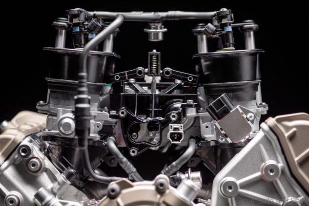 There are three variants: Panigale V4, Panigale V4S and V4S Speciale – the latter two with electronic Öhlins suspension featuring a new Smart EC 2.0 system, forged aluminum wheels, lithium ion battery. The Panigale V4 Speciale is a numbered, limited-edition bike with dedicated livery, titanium exhaust and machined from solid components.