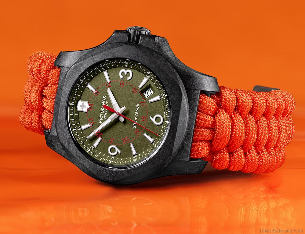 The Carbon comes as part of two limited edition series. The 1,000 piece collection includes an additional khaki rubber strap, which can be worn for a more camouflage look, while the 200 piece Victorinox own store exclusive comes with a second orange rubber strap making it a more stand out timepiece. Combining functionality with style, the new I.N.O.X. Carbon Limited Edition is a must have.