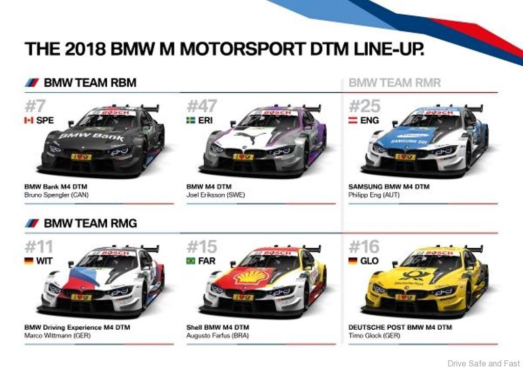 Long-standing BMW Motorsport partners remain part of the DTM project in the 2018 season. Bruno Spengler (CAN) will take to the track once again with the number 7 BMW Bank M4 DTM. Brazil’s Augusto Farfus will return to the wheel of the number 15 Shell BMW M4 DTM. Timo Glock (GER) will contest the upcoming season in the number 16 DEUTSCHE POST BMW M4 DTM once again.