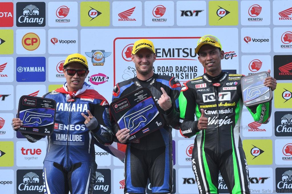 Azlan Shah Kamaruzaman’s hunt for his third Asian title has gotten off on solid footing. Two strong performances at the season-opener of the Idemitsu Asia Road Racing Championship at the Chang International Circuit had placed the Manual Tech KYT Kawasaki rider in good position to defend his SuperSports 600cc title.