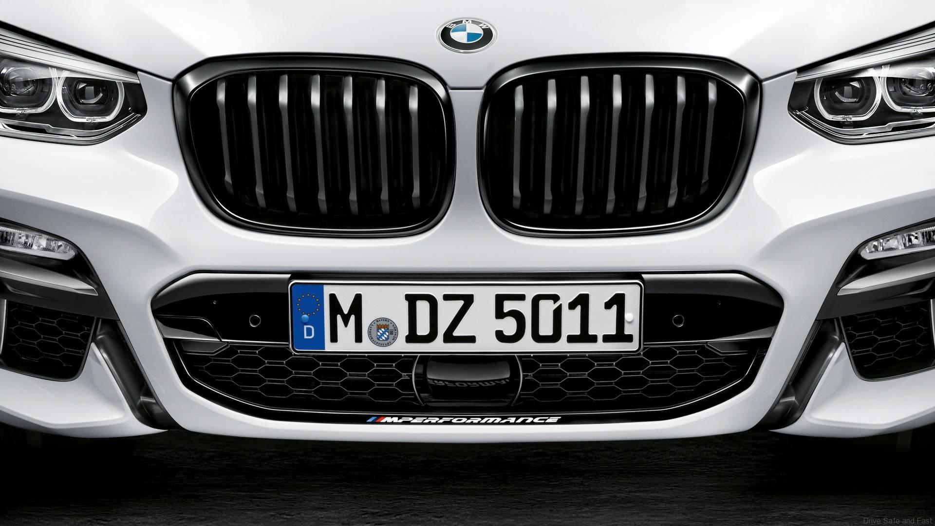 M Performance lettering is one particularly effective way of creating a visual highlight. Designed to ensure an ideal match with the model in question, the side lettering in Frozen Black underscores the sporty character of the vehicle, in particular emphasising the dynamic proportions of the body. In addition to the side lettering, the appearance of the BMW X3 and BMW X4 can be further refined with the front lettering in high-gloss black – matching the other front attachment parts for these two models, which also feature a high-gloss finish. M Performance front radiator grilles in high-gloss black are available for the BMW X2. These have the same geometry as the standard grilles but are much more visually striking, thereby underscoring the vehicle’s sporty flair and dynamic performance.