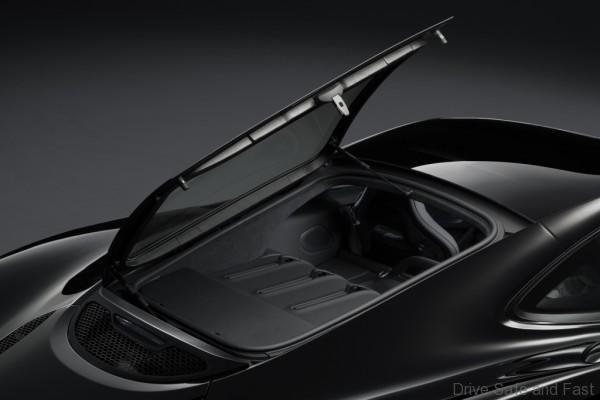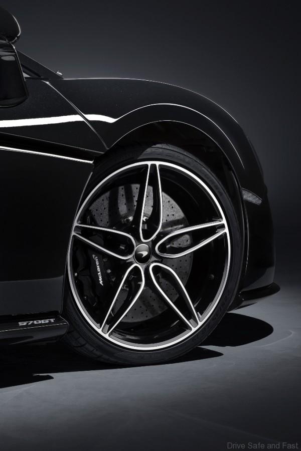 The exterior of the vehicle is finished in Carbon Black, a striking and extremely deep colour, developed specifically by McLaren Special Operations. The stealth theme extends to the MSO Defined Black Pack replacing standard-fit Dark Palladium components including front and rear splitters, side skirts and air intakes with black. Completing the look are the 5 Twin-Spoke Lightweight Forged Wheels with a new Gloss Black Diamond Wheel Finish shed with Pirelli P Zero™ Corsa Tyres and Black Brake Calipers with Carbon Ceramic Brakes.