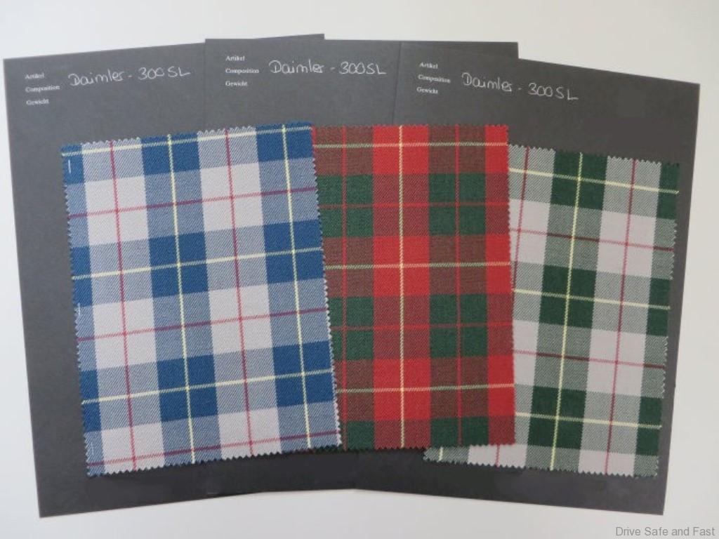 This reproduction of the chequered upholsteries is Mercedes-Benz Classic’s response to the popular request from owners of the legendary sports car for the original specification of the interior material. As was the case at the premiere of the “Gullwing” model in 1954 the three fabrics correspond to the original delivery specification of the then Daimler-Benz AG, and are therefore made from 100-percent high-quality wool yarn. When it came to determining the exact colours and patterns, Mercedes-Benz Classic worked closely with the Design department in Sindelfingen – which is also historically authentic.