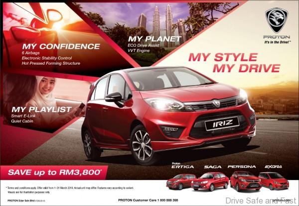 In March 2018, the automaker’s ‘My Style, My Drive’ campaign hits sales galleries nationwide and for this month, it focusses on the Proton Iriz. Customers are invited to rediscover the award-winning compact hatchback by taking a comprehensive test drive to appreciate the new features that were introduced in the updated model in 2017.