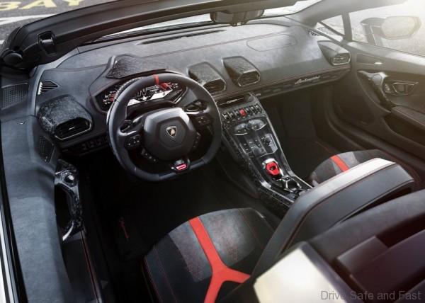 Like the Performante coupé, the Spyder outputs 640 hp at 8,000 rpm, producing 600 Nm of torque at 6,500 rpm, and with more than 70% of torque already available at 1,000 rpm. With a total dry weight of just 1,507 kg, the Spyder returns a weight-to-power ratio of 2.35 kg/hp, with weight distribution front/rear of 43/57%.