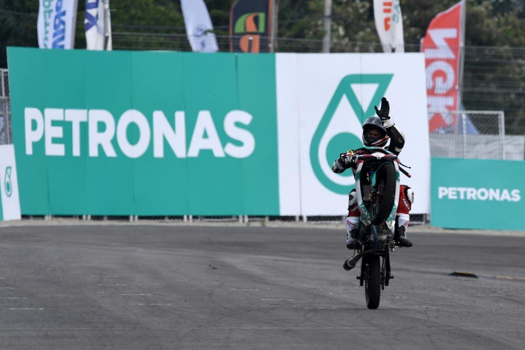 Racing in a team filled with Malaysia’s top racing stars, the PETRONAS Sprinta Yamaha Maju Motor rider’s dominance in the CP150 class looked to be under threat, particularly when debutant Mohd Akid Aziz stunned everyone by claiming pole position following the CP150 SuperPole.