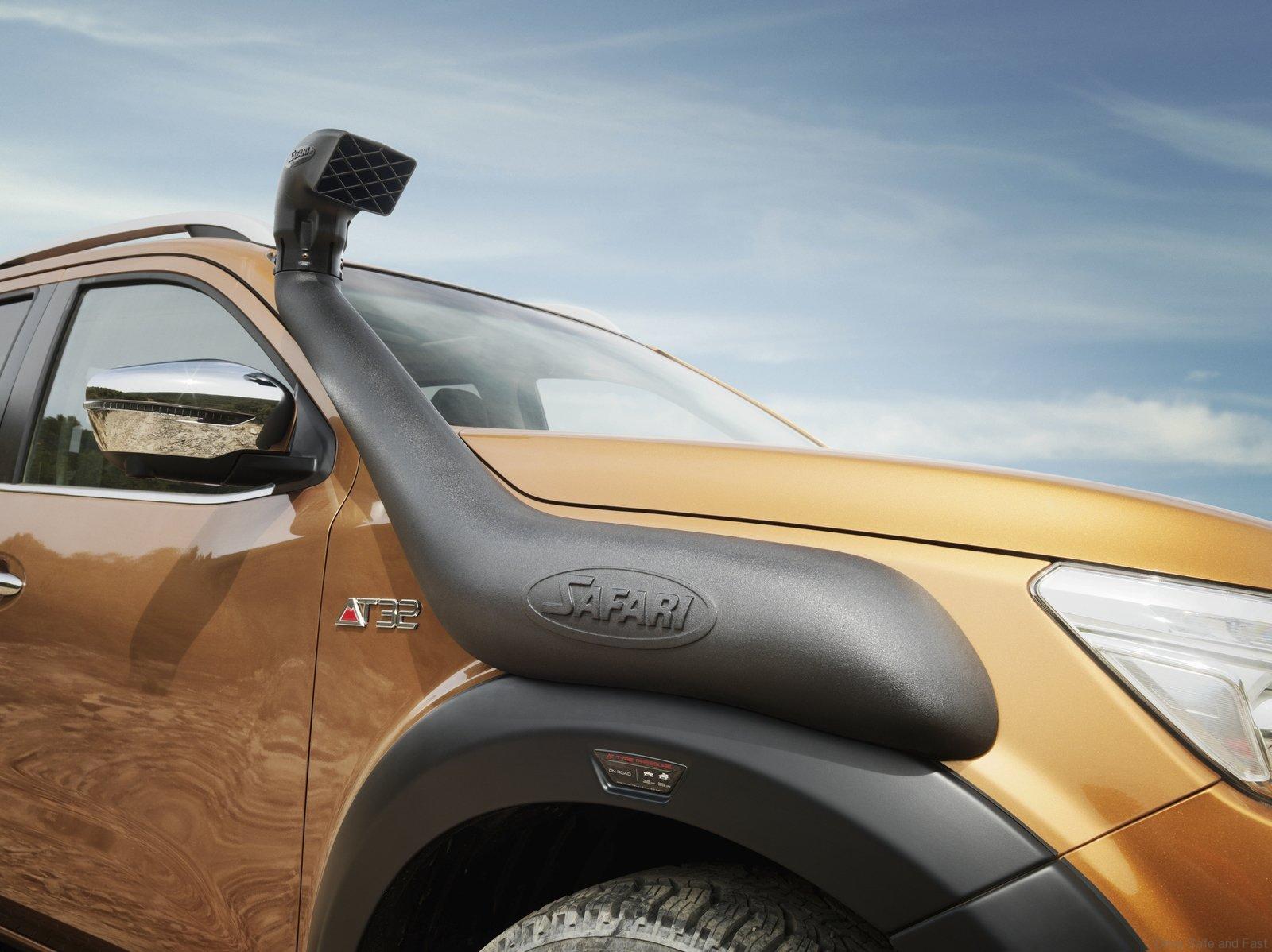 The truck also sits higher above the ground thanks to a 20mm (0.8-inch) suspension lift. With the bigger tires, the Navara now rides 40 mm (1.6 inches) higher than the standard model. Optionally, Nissan offers a snorkel that boosts wading depth from 600 to 800 mm (23.6 to 31.5 inches). The feature also improves air intake and protects the engine from dust and water ingress.