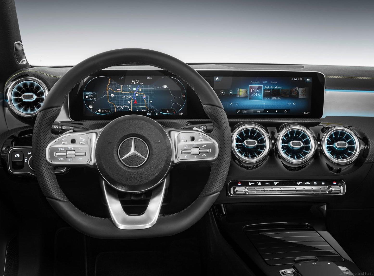 The interior of the new A-Class is completely redefined with its modern, avant-garde look. Mercedes-Benz has taken a completely new approach, revolutionising the compact class from the inside with a new feeling of spaciousness. The unique interior architecture is shaped in particular by the avant-garde design of the dashboard: For the first time a cowl above the cockpit has been completely dispensed with. As a result, the wing-shaped main body of the dashboard extends from one front door to the other with no visual discontinuity. The Widescreen display is completely free-standing. The air vents in a sporty turbine-look are another highlight.