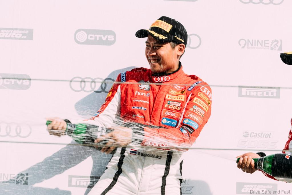 Thailand’s Bhurit Bhirombhakdi took his second consecutive Audi Sport R8 LMS Cup victory on Germany’s 4.638km Nürburgring Grand Prix circuit, taking the chequered flag after a drama-filled round four. His impressive points haul over the weekend earned the Singha Plan-B by Absolute Racing driver the prize of a seat on an Audi Sport R8 LMS Cup team in the 2019 Total 24 Hours of Spa.