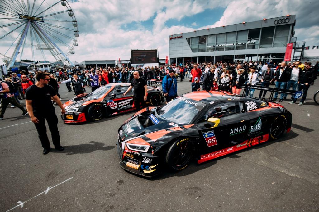Singha Plan-B by Absolute Racing’s Bhurit Bhirombhakdi took his first overall Audi Sport R8 LMS Cup GT3 victory in round three as the series made an eventful European debut at Germany’s legendary Nürburgring. Local driver, LMS Engineering’s Stefan Wieninger, took an impressive maiden win in the series’ new category for the new Audi R8 LMS GT4 on his first ever race in the car. The Cup pits were integrated within the Audi Sport campus – a focal point of the entire paddock – as thousands flocked to the biggest Audi Sport customer racing weekend of the season.