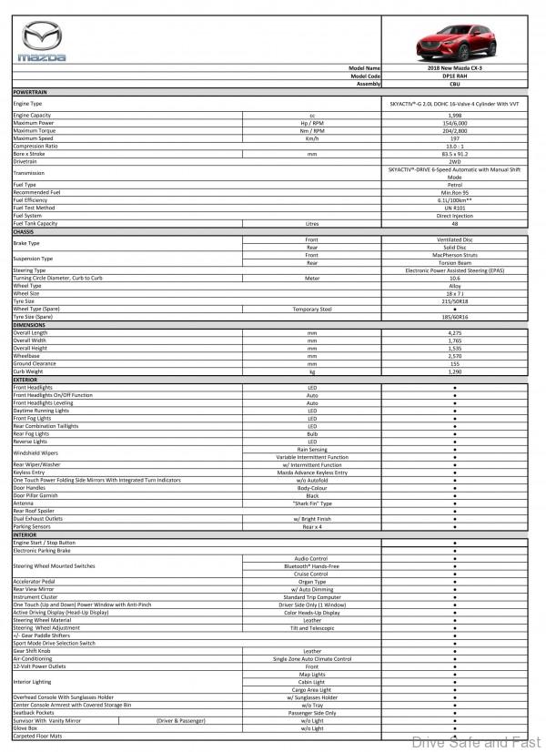 Apart from the price list, Bermaz has also released full specifications of the CX-3. Check it out below.