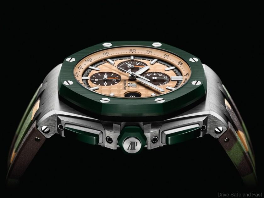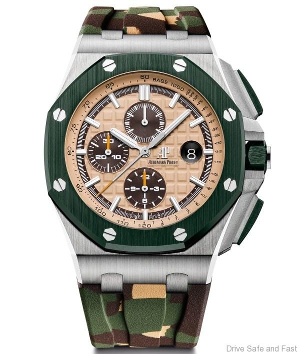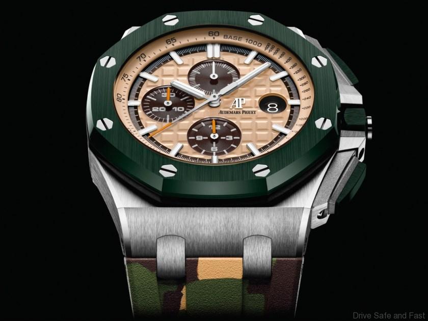 Audemars Piguet presents a new 44mm stainless steel model of its Royal Oak Offshore Self-winding Chronograph with the khaki ceramic bezel, push-pieces and screw-locked crown as well as camouflage strap option.