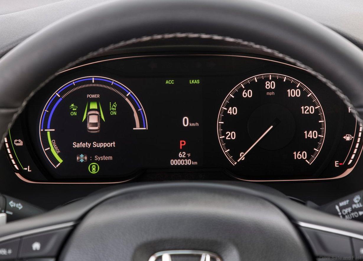 To customize the driving experience for maximum efficiency or driving performance, drivers can choose between ECON, SPORT and EV modes, in addition to the Normal driving mode. Drivers can also choose between three different levels of regenerative braking using selector paddles mounted on the steering wheel. By pressing the EV button on the center console, drivers can opt to go for roughly a mile under electric power alone. Since the electric motor directly powers the drive axles, Honda Insight’s two-motor technology works without a conventional automatic transmission. When circumstances demand, a lock-up clutch connects the gasoline engine directly to the electric drive motor, providing the most efficient operation for highway driving.