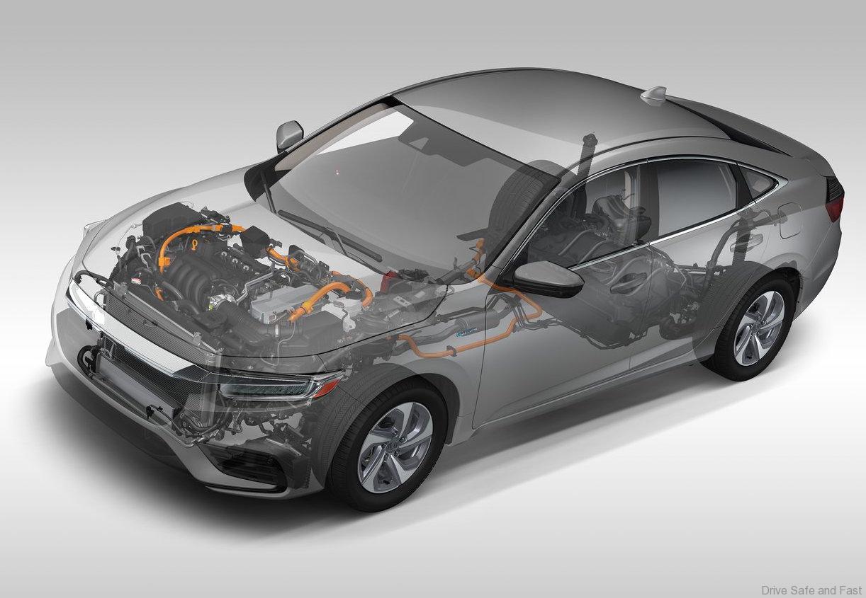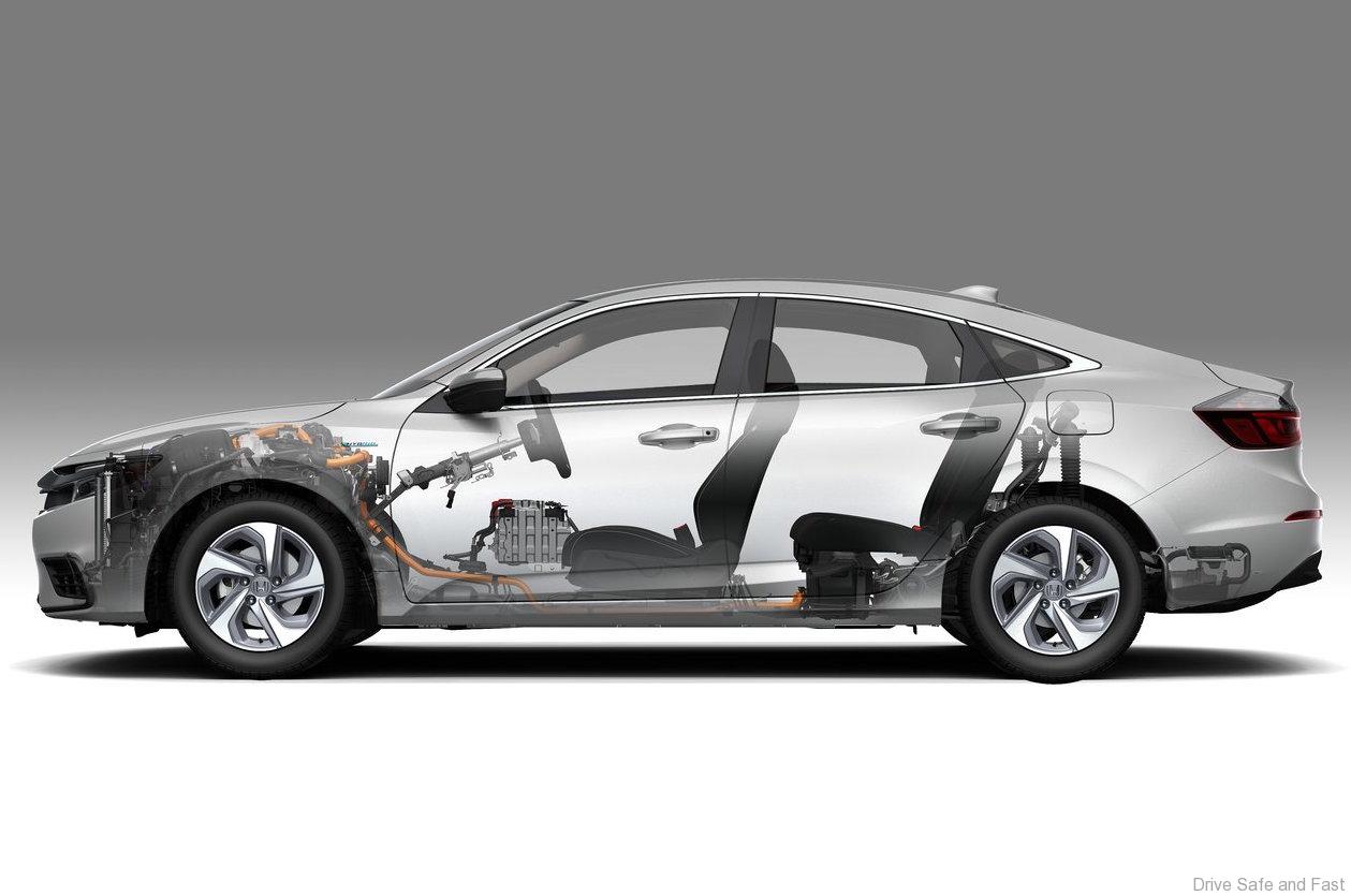Powering the 2019 Honda Insight is the third-generation of Honda’s two-motor hybrid system. The highly efficient 1.5-liter Atkinson-cycle gasoline engine and powerful electric drive motor combine for a system output of 151 horsepower and 197 lb-ft of electric motor torque. Under most conditions, Insight operates as a series hybrid — the gasoline engine connects to a generator motor to produce electricity that either powers the electric propulsion motor, recharges the 60-cell lithium ion battery pack, or both.