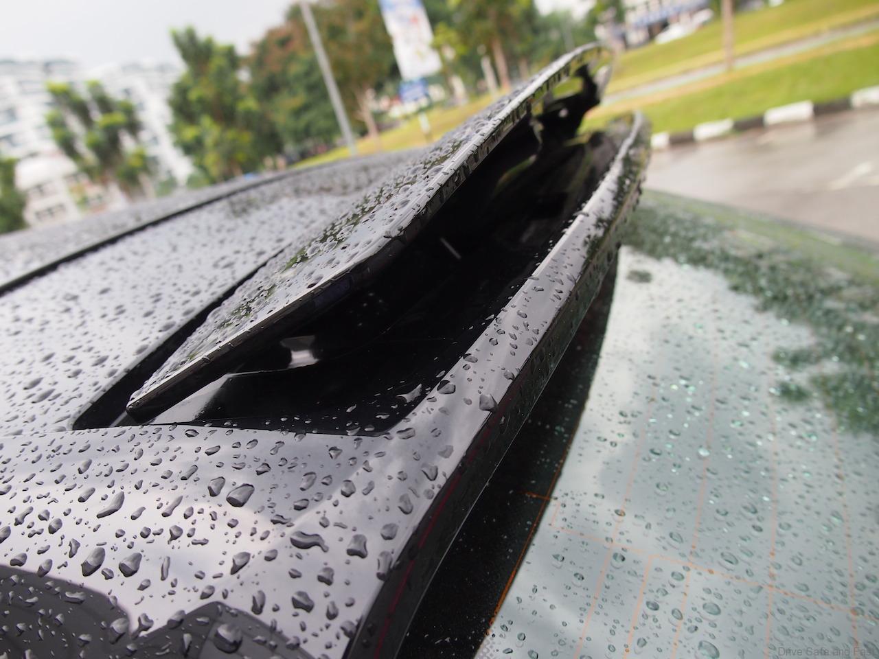 At the top rear of the vehicle, the roof extends into an adaptive spoiler. This is the first of its kind in the market. The angle of the roof spoiler is set in three stages depending on the driving situation and selected vehicle settings, and generates an additional downforce of up to 50 kg on the rear axle.