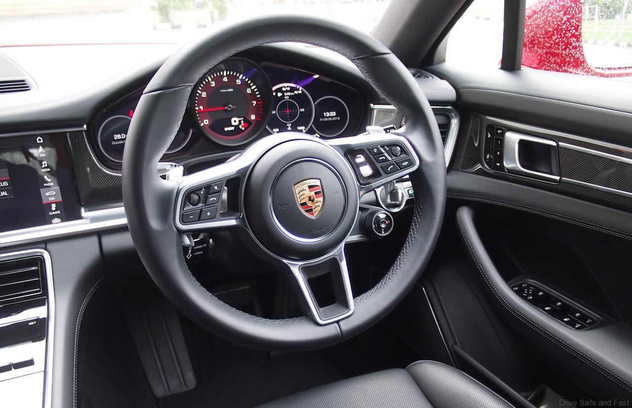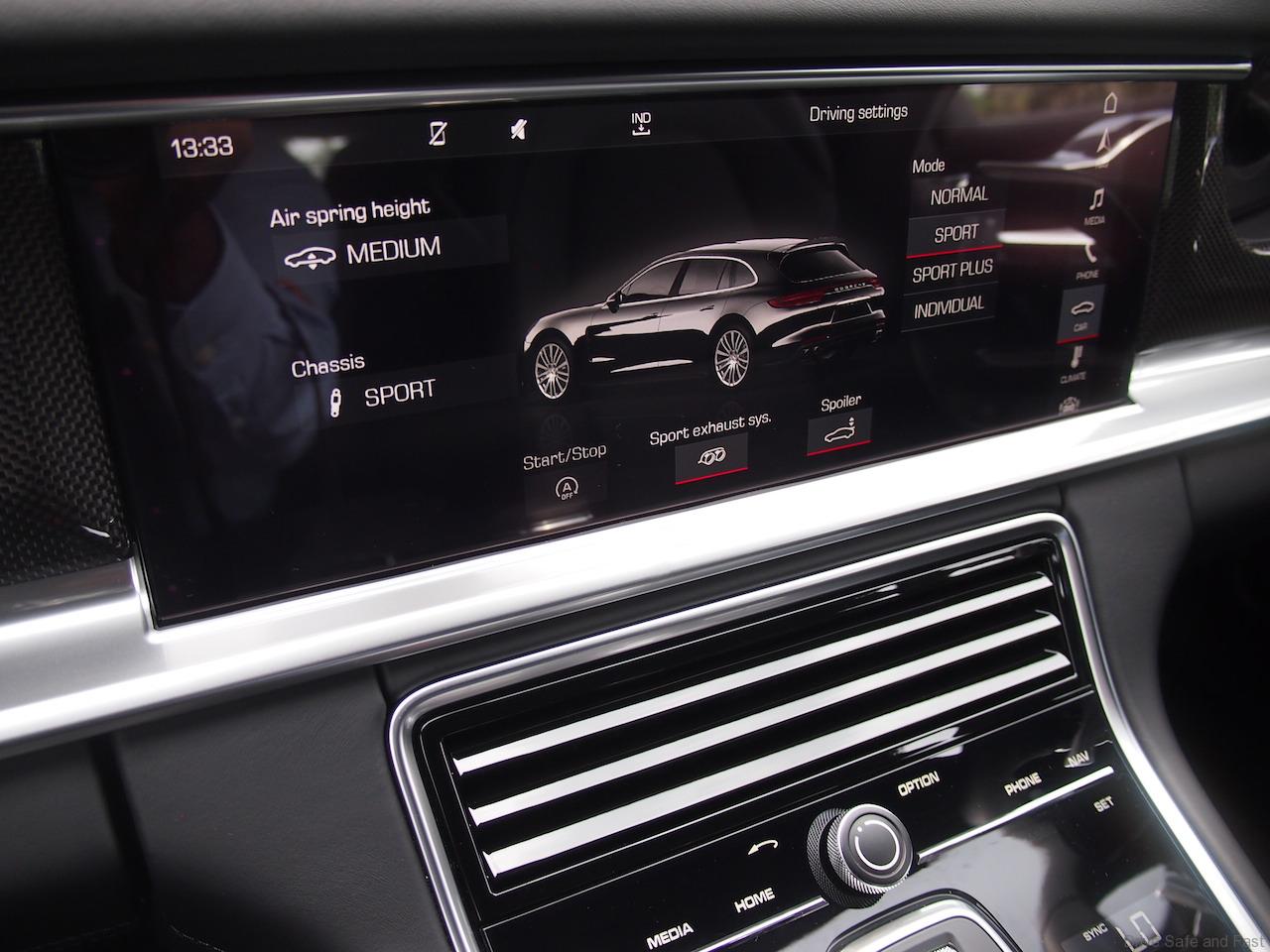 The Sport Turismo we are test driving here has Porsche’s 3.0 engine under the hood which is good for 330bhp. It does a very good job of imitating a base Porsche 911, especially when you put it in “sports mode,” which changes a number of electronically modulated variables such as throttle, transmission maps, handling parameters, and so on to give this large vehicle nimble handling. At ignition this new engine is quieter. Prod the accelerator and the rumble is muted. This new 3-liter is refined with a hint of being bored. But find an open road, stick the 8-speed into sports mode and a hyperactive child is woken up. This 3-liter turbo shows its mettle on the open road. Braking is strong and even after a couple of hours of quick inner city driving there is no fade or retardation of the brakes.