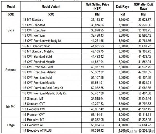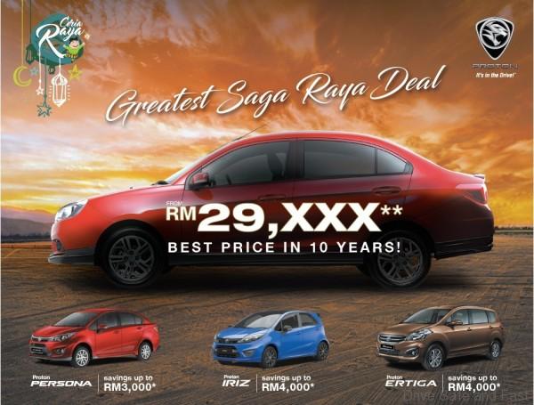 Additionally, there will also be great savings for all other Proton models apart from the best Saga deal in relation to the Hari Raya promotion and to encourage sales of Proton cars in our effort to support the Tabung Harapan. There will be savings of up to RM4,000 for Iriz and Ertiga, and up to RM3,000 for Persona. The savings offered are on top of the zerorised GST, resulting in an offer almost double the GST reduction.