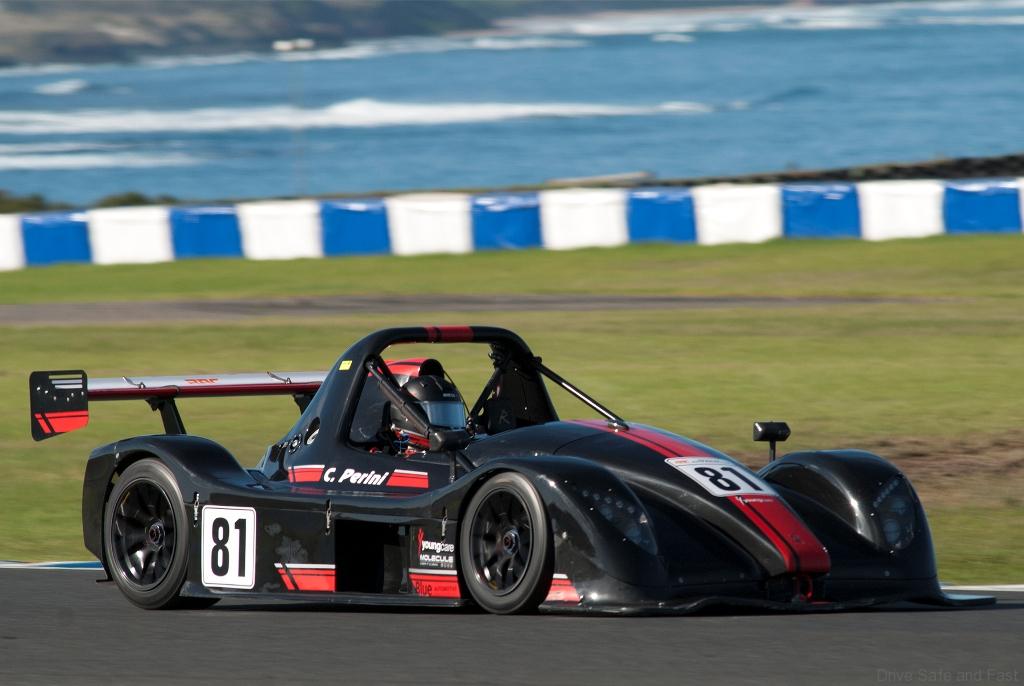 With Paddon absent and unlikely to defend his championship winning streak this year, Burke has an opportunity to effectively put the title out of reach heading home Sunday night, but there are a couple of drivers that might have their own ideas about allowing him to pave the way to his maiden championship.. One of those – rookie Chris Perini – has shown that he will not be intimidated by the experience of his rivals, nor his relative lack of laps in a Radical, and as he showed at the season opener at Bathurst, he has the speed to take the fight to Burke across the two scheduled 50-minute races.
