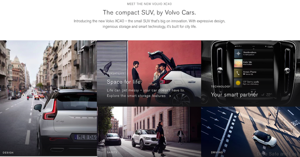 The XC40 is Volvo’s first ever premium compact SUV, and is also the first model to be built on the company’s all-new CMA (Compact Modular Architecture) platform. Designed primarily for the city, it features much of the advanced connectivity, entertainment and safety technology from Volvo’s newest 60 and 90 series cars, the XC60, S90, V90 and XC90. It is also powered by Volvo’s efficient Drive-E engines, and is offered with front- or all-wheel drive, and with manual and automatic gearboxes.