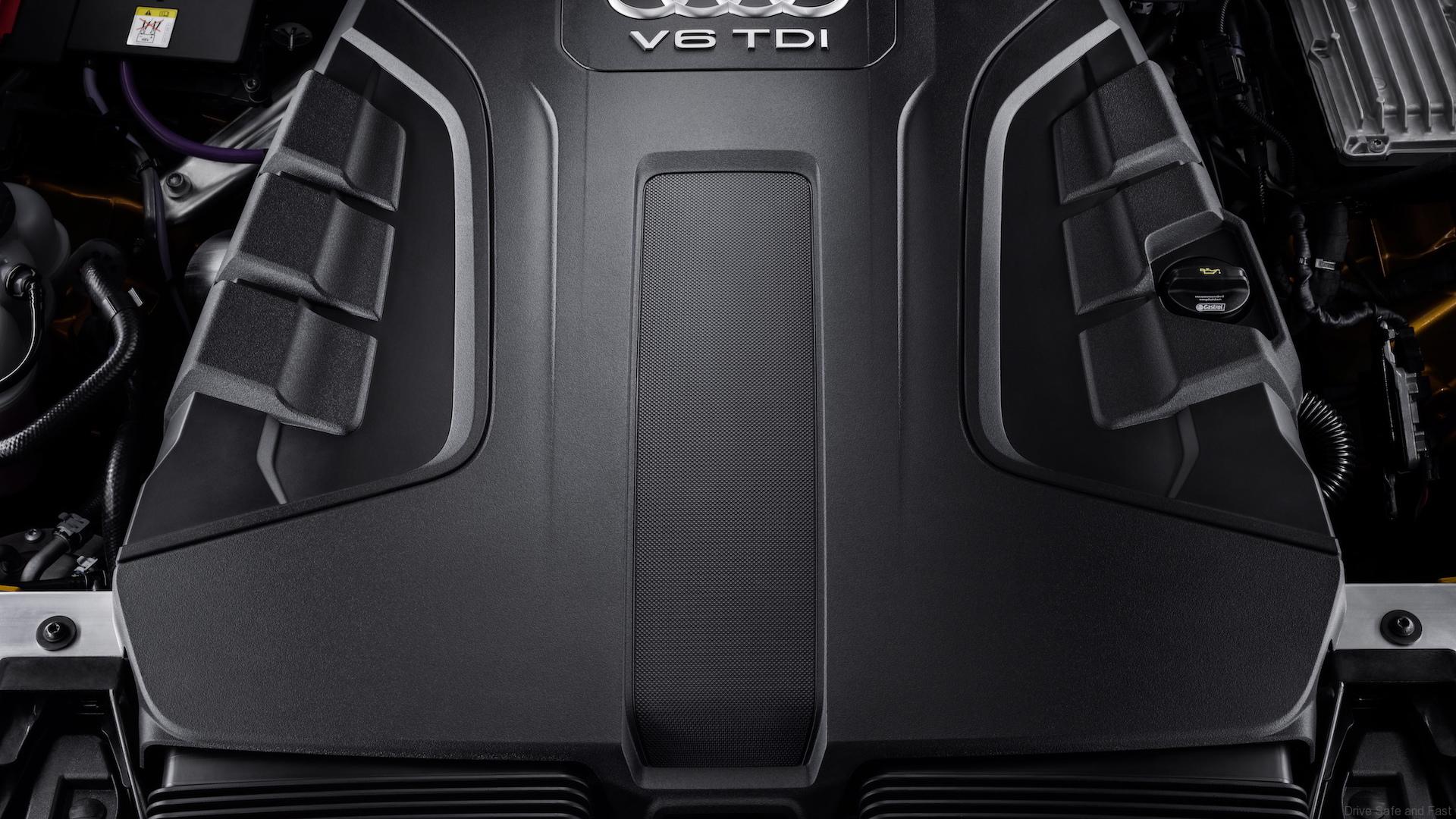 In European markets, the Audi Q8 starts with the 3.0 TDI, the Q8 50 TDI (combined fuel consumption in l/100 km: 6.8 – 6.6 [34.6 – 35.6 US mpg]*; combined CO2 emissions in g/km: 179 – 172 [288.1 – 276.8 g/mi]*). It generates 210 kW (286 hp) and delivers 600 Nm (442.5 lb-ft) of torque to the crankshaft. It accelerates the large SUV from 0 to 100 km/h (62.1 mph) in 6.3 seconds on its way to a top speed of 245 km/h (152.2 mph). The 50 TDI offers sophisticated solutions for many technologies. The crankcase and the cylinder heads have separate coolant circuits so the ideal temperature level can be set for any driving situation. Cast-in channels cool the pistons with oil. Their rings and the wrist pins are designed for minimum friction, while the oil pump is fully variable.