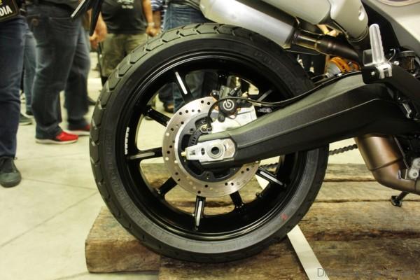 The chassis set-up of the Ducati Scrambler 1100 is comprised of an all-new twin upper spar steel Trellis frame that envelopes the engine with a rear aluminium subframe. The Sport variant gets Öhlins suspension (as opposed to Kayaba suspension on the Special variant), with upside-down 45-mm front fork and a rear shock with adjustable spring preload and rebound damping.