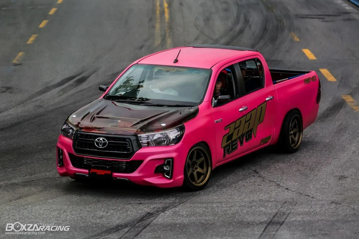 Packed with a 2,400cc engine, paired with a rigid suspension system, the Hilux Revo turns into a monstrous build that not only looks intimidating, it performs close to the cars used in the Toyota Vios One Make Race when comparing lap times, leaving the smell of fresh burning tire rubber in its wake!