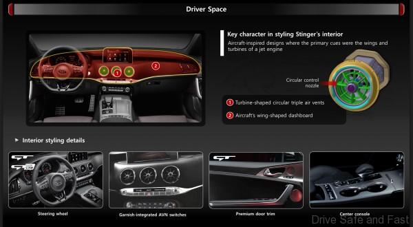 Other amenities included in the Kia Stinger for a pleasurable driving experience are Colour Head-Up Display (HUD), Dynamic Bending Light (DBL), Around View (AVM) with Driving Rear-View (DRM) Monitors, Integrated Memory System (IMS) for the driver’s seat, wireless smartphone charger and electrochromic side mirrors to control the glare of incoming headlights.