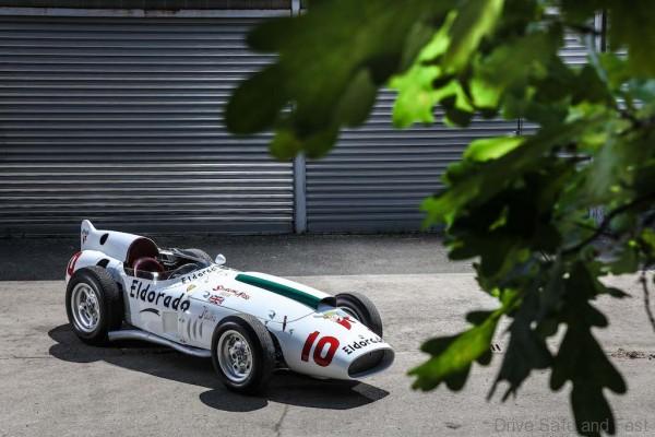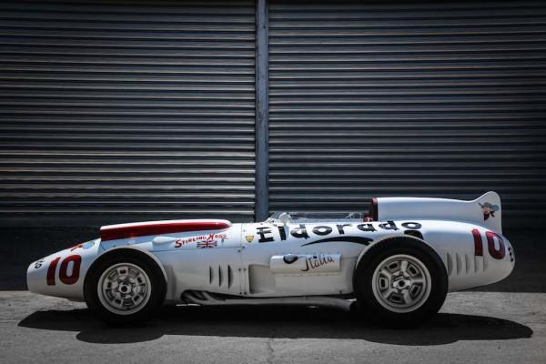 The Maserati 420/M/58, chassis number 4203, was thus finished with a cream coloured livery, instead of Italian racing red. The name Eldorado was emblazoned in bold black lettering along the sides of the car, with two additional smaller logos on the nose and below the small deflector that acted as a windshield.