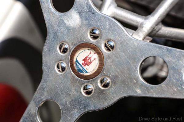 The aluminium bodywork, hand crafted by Fantuzzi, was characterised by an aerodynamic vertical fin behind the cockpit and a front carburetor scoop.