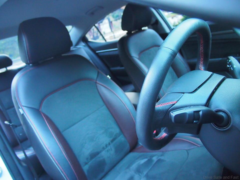 We’ll admit, the Elantra isn’t a breakthrough design. It feels like Hyundai have just sharpened up the design from the previous generation. But we really like the way it looks despite being more of an ‘evolution’ than a ‘revolution’. It shows real maturity, constraint and tastefulness. The front is sharp and aggressive looking with a wide chrome grille up front. The silhouette is shaped by the Fluidic Sculpture 2.0 design language and the rims are just the right size. The interior is covered in faux-suede, you get LED DRLs and taillights with really cool LED graphics – all boxes ticked.