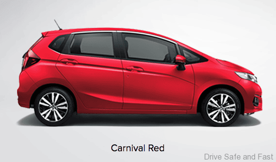 And to contrast the City’s mature ‘Dark Ruby Red Pearl’ paint choice, the Jazz gets a brighter, more ‘youth-centric’ hue of paint called ‘Carnival Red’. Different style of alloy rims, too.