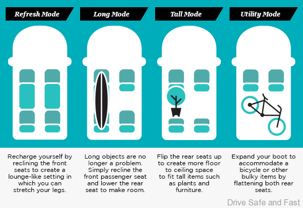 Honda touts a few seating modes for the Jazz which allow for tall or large objects to be transported in its cabin.