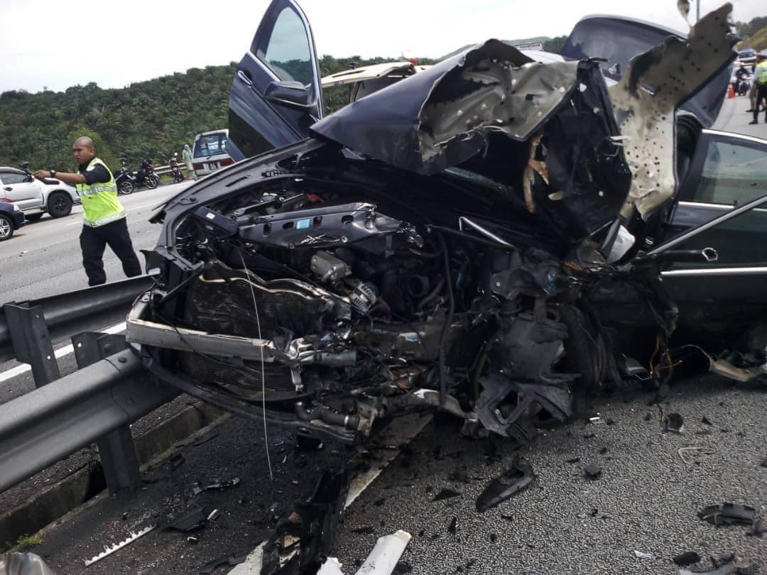 This fatal accident that claimed 4 lives is now being investigated to find the real reasons why it involved so many vehicles. There were 6 vehicles including a truck/trailer, a luxury MPV and cars at the 446km of the North-South Expressway (PLUS) yesterday (Saturday) afternoon. (pictures from facebook friends)