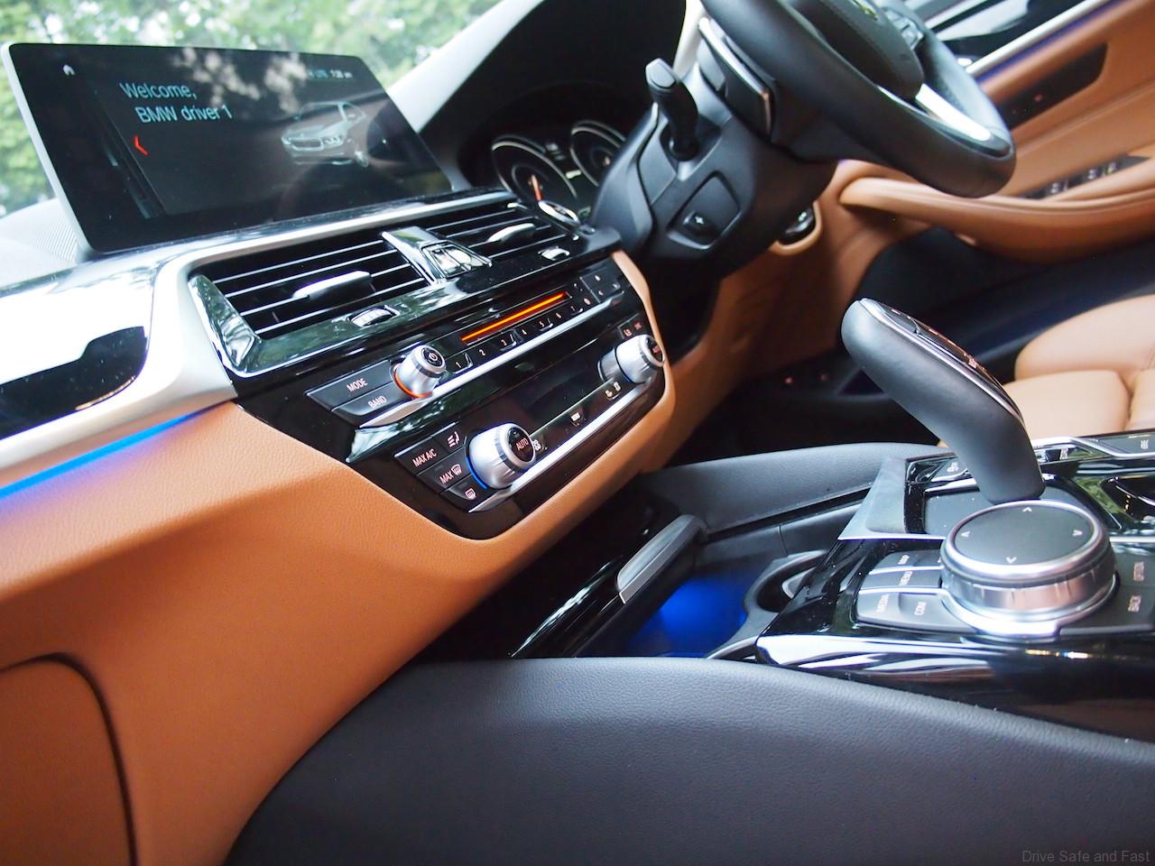 Well it is simple. When the car’s hybrid battery is fully charged, this 530e if a fun sports sedan as it delivers 113 hp from its electric motor with a maximum torque of 250Nm on tap, while its 4-cylinder 2-liter petrol engine generates 184 hp and 320 Nm of torque. The combination of motor and engine working delivers 252 hp and combined peak torque of 420 Nm which propels the BMW 530e Sport from 0 to 100 km/h in 6.2 seconds and enables it to reach a top speed of 235 km/h. What this means in lay-man terms is, this sedan is entertaining to drive on the open road and will be a docile well mannered machine in heavy city traffic.