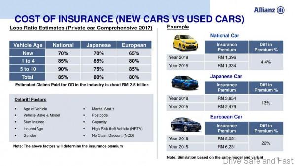Sazali added that used cars usually have a lower insurance premium when compared to new cars. For example, comparing a 3-year old car vs. a new car, the difference in premium is 4.4% for national cars, 13% for Japanese cars and 22% for European cars.