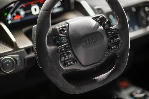Much like previous heritage models, the Ford GT Heritage Edition features a unique serialized identification plate, plus exposed matte carbon fiber door sills, air register pods and center console.