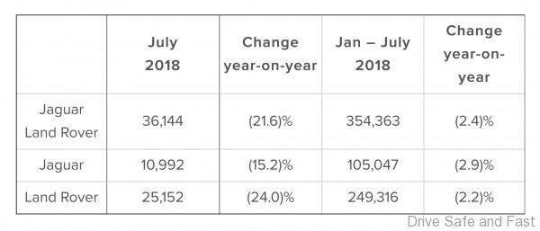 Jaguar Land Rover total retail sales for the first seven months of 2018 calendar year were 354,363, down 2.4% compared to the same period a year ago.
