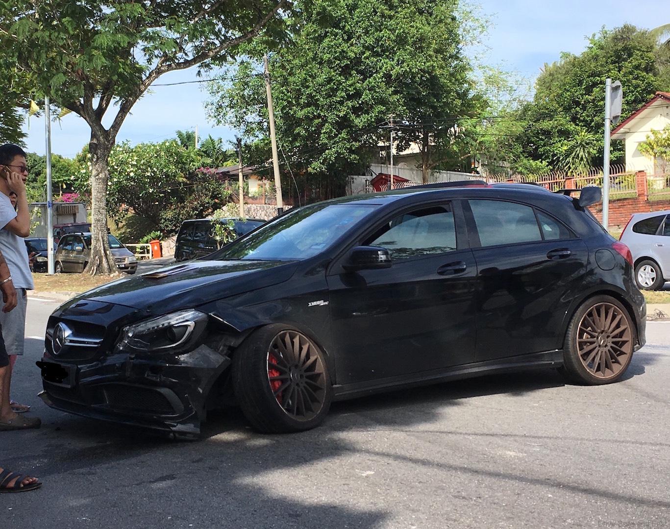 You do not want this happening to your RM343k hot hatch. Early Saturday morning this driver was a little too enthusiastic behind the wheel of his AMG45 and had a mishap at Jalan Gasing in front of La Salle PJ which caused a massive traffic jam that spilled over to Federal Highway.